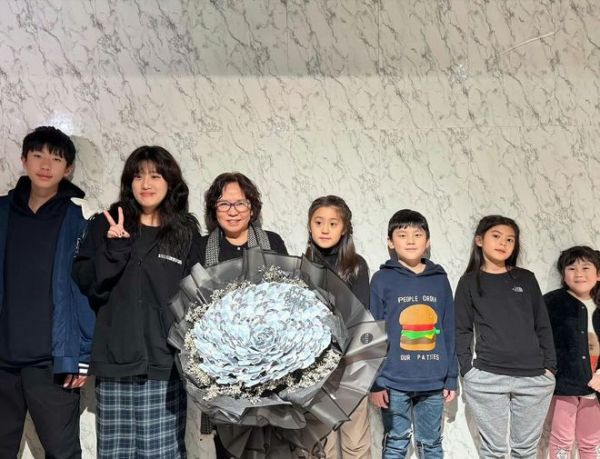 50岁“童颜女神”贾静雯为妈妈庆生,三个女儿被赞遗传了妈妈美貌