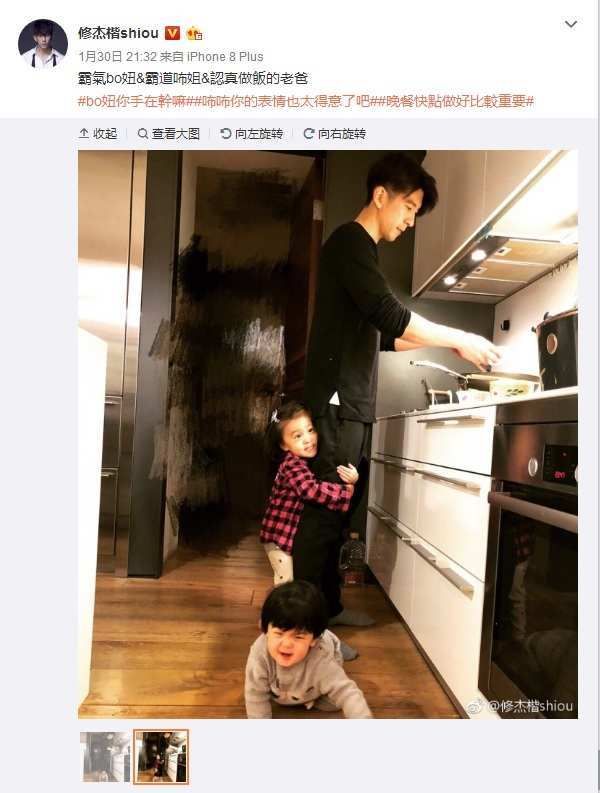 这么美的女人,一举拿下小她9岁的修杰楷还真是情理之中的事儿。昨天修杰楷又在微博晒自己在家当奶爸的照片了,虽然遭遇了“棉袄轰炸”,但依然应付自如,看得出平时没少在家下功夫。真真是模范老公一枚,这一次贾静雯是真的嫁给了爱情。