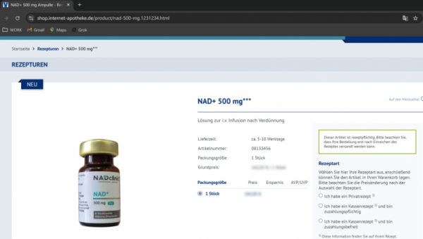 NADclinic的NAD+产品已进入德国医疗渠道数年,包括知名在线药房 Viktoria Apotheke。