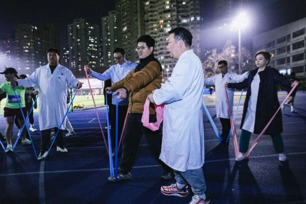本次赛事由黄浦区体育局、黄浦区体育总会主办,黄浦区体育事业发展指导中心承办,卢湾体育中心协办,并得到卢湾跑团等单位的大力支持。活动筹备期间,瑞金康复医院充分发挥其在心肺康复与中医康复领域的专业优势,精心设置了健康咨询与康复体验两大服务区。康复医学科潘惠娟主任、针灸推拿科张伟主任现场坐诊,为跑者们提供专业的运动康复指导以及颈肩腰腿痛咨询服务。同时,还带领大家开展弹力带热身活动,这一贴心举措不仅吸引了众多参赛跑友踊跃参与,周边不少居民也主动加入其中。在专业指导下,大家认真做好赛前准备,有效降低了运动损伤的风险。
