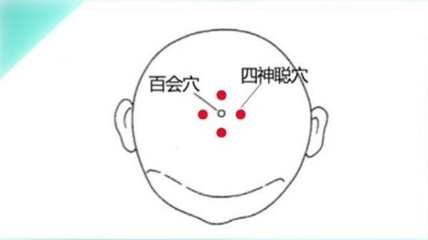 百会穴前后左右各一寸(拇指第一关节宽度)。