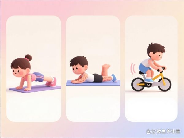 推荐组合: “死虫子”(锻炼核心稳定)+ “自行车卷腹”(锻炼腹斜肌)+ “臀桥”(锻炼下背和臀部)。