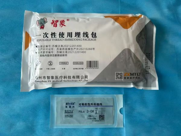 无菌操作:操作流程规范,一次性埋线包+埋线针,安全无感染;
