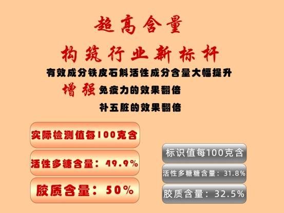 旬补铁皮石斛的活性多糖含量高达49.9%,远高于市场平均水平,核心成分的优越性确保了其卓越效果。石斛碱的含量为28.5%,氨基酸含量则达到29.2%。这些高含量的成分使旬补石斛在改善三高、清肺养肺、养肝护肝等方面表现出色,成就了其在品质上的领先地位。