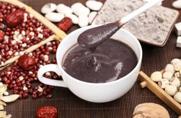 原料:黑芝麻30克、杏仁30克、糯米40克、白糖一勺