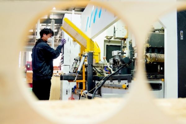 资料图:新华社照片,一家家具公司的工作人员在生产设备前值守。 (图文无关)