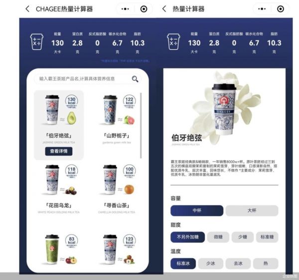 如果说此前的茶饮行业是依靠燕窝、桃胶等健康食材来进行差异化布局,那么如今则是更倾向于通过多方面证实产品的健康度。近日,北京商报记者梳理发现,一个月内多家茶饮品牌开始尝试解决消费端对奶茶的健康焦虑。关于茶饮产品的热量可视化和成分参数化上,霸王茶姬则上线“热量计算器”,可自定义计算产品热量值,此前,该品牌还通过官方账号对外公布首批6款产品热量和营养成分,并同步在门店菜单、小程序、外卖等渠道上线“低负担控糖专区”。