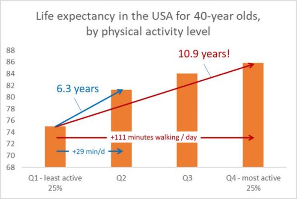 不爱动的人每天增加 2 小时步行,或可延寿 11 年