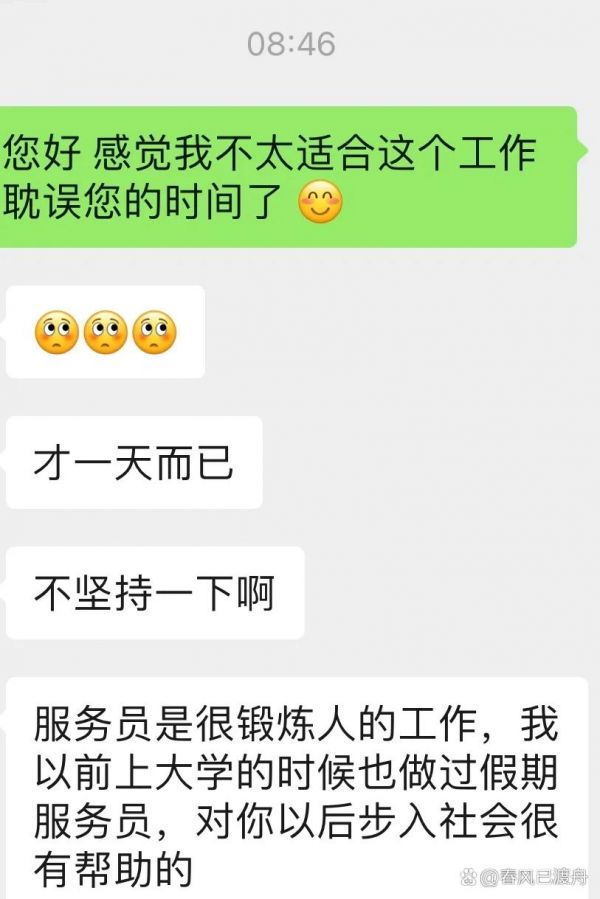 寒假工干一天就想跑路 昨天干了一天服务员...全文