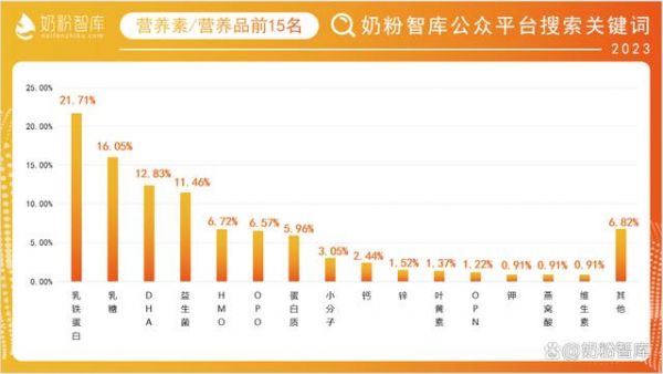 据奶粉智库《2023年奶粉智库微信公众平台用户搜索关键词数据报告》,乳铁蛋白位列营养素/营养品第一名,可见消费者的关注度之高。