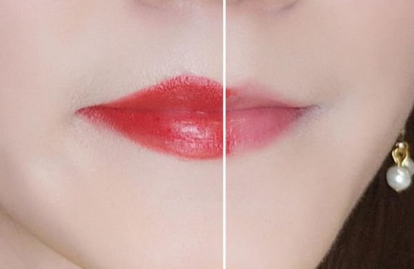 最后,关于持久度的问题。我吃完中饭,还有大部分口红存活了下来。总体来说持久力不错哦。最后来一张2个色号的试色对比图。喜欢哪个收哪个,不过小编建议allin!2只可以根据风格换着涂,也可以叠加涂。