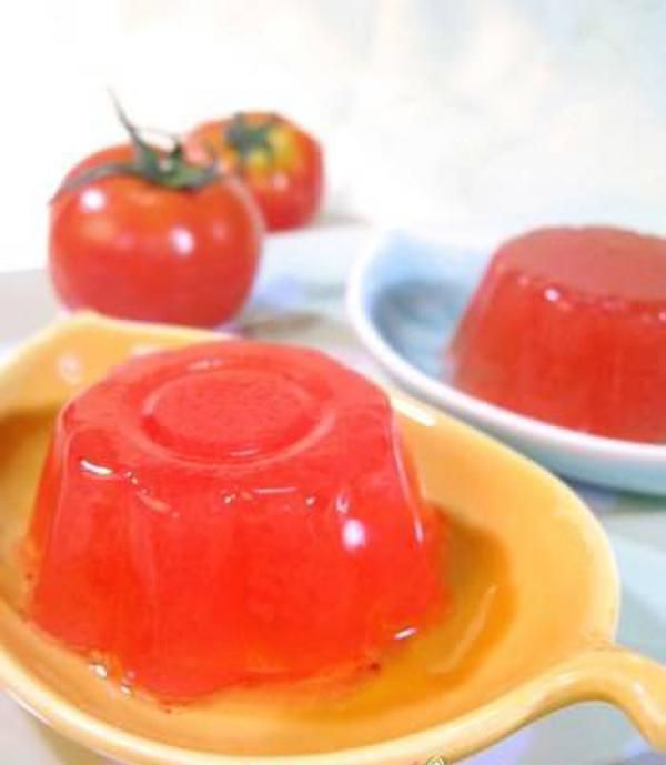 在汤锅加入水与洋菜粉待煮沸之后关火,将番茄汁倒入与洋菜汁后拌匀,等凝结之后放入冰箱。食用时再根据自己的喜好添加适量的蜂蜜,就是一道健康无负担的优质点心。