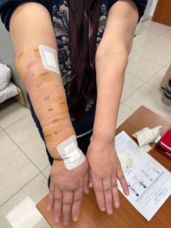 这位女性患者陈阿姨在十年前因右乳癌接受了“右乳癌改良根治术+右侧腋窝淋巴结清扫术”。手术虽然成功,但却因此患上肢淋巴水肿。十多年来,陈阿姨辗转多地求医,都被告知没有特别好的治疗方法,只能通过传统的弹力敷料加压、手法按摩、皮肤护理等保守治疗来缓解症状,延缓疾病进展。她不得不每个月都要接受消炎治疗,让她的退休生活变得苦不堪言。