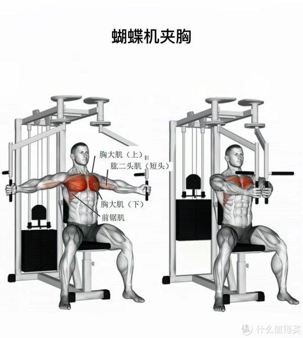 调整姿势,确保臀部和腰背部贴紧靠背,挺胸收腹,双手握住蝴蝶机的把手,不要握得太紧。同时要记得沉肩夹背。