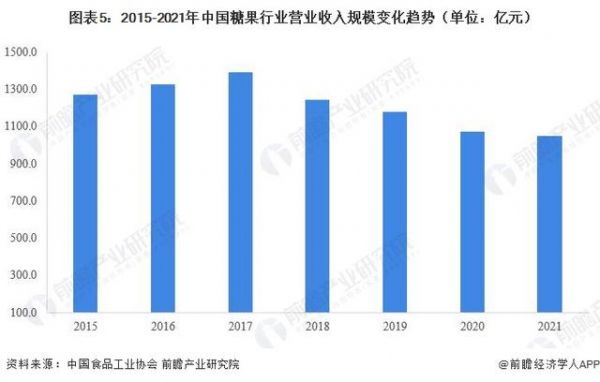 根据中国食品工业协会统计数据显示,2017年以来,我国糖果行业营业收入规模持续下滑,到2020年,全国糖果行业营业收入规模为1074.9亿元,同比下降9.0%。前瞻结合2021年我国糖果行业发展情况初步估算,全国糖果行业营收规模进一步下降至1049亿元。