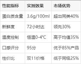 蛋白质含量(营养密度高) 说实话,最开始我也觉得牛奶就是牛奶。但是当我了解到3.6g/100ml的蛋白质含量后,才知道什么是真正的优质蛋白。这个含量比普通牛奶高出40%,特别适合健身和增肌人群。