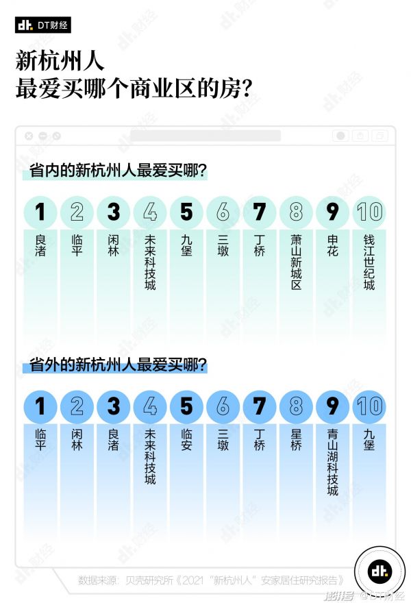 根据《安家报告》的统计,虽然省内省外在购房区域的偏好有所不同,但前四名基本就是这四个地方的排名组合——良渚、闲林、临平和未来科技城。