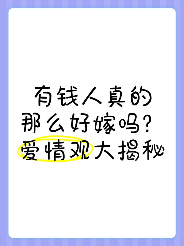 有钱人真的那么好嫁吗?爱情观大揭秘 ...全文