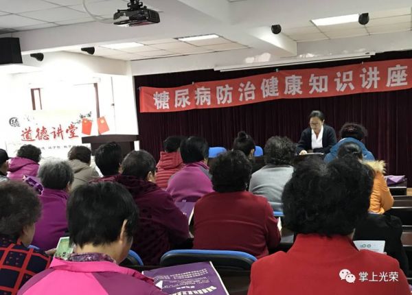 2017年11月14日是世界糖尿病日,为增强社区居民自我健康状况的关注度,提高居民对糖尿病疾病的认识以及如何正确预防糖尿病,友谊社区邀请城区社区卫生医院宫怡主任在社区活动室开展了糖尿病防治健康知识讲座。