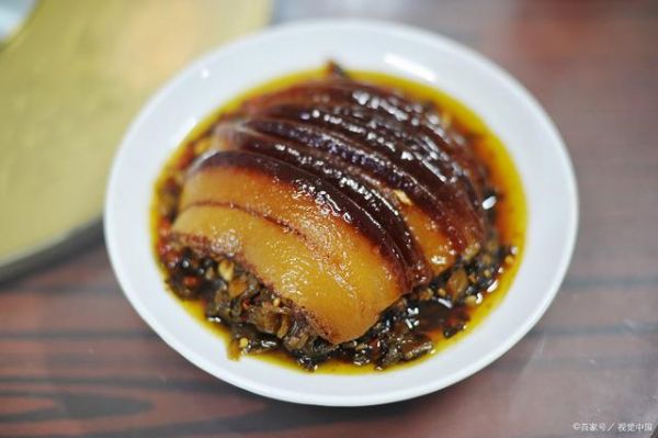10、梅干菜扣肉:这是一道具有浓郁地方特色的传统菜肴。选用优质的五花肉和梅干菜一起蒸制而成,口感酥烂入味,梅干菜的香味与五花肉的鲜美相互融合,令人回味无穷。