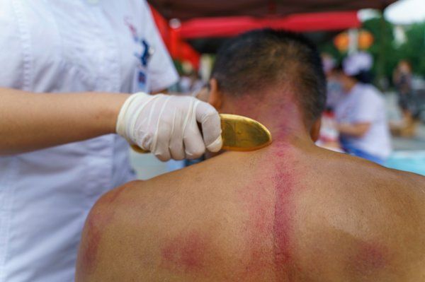 使用刮痧板配合特定手法,在人体体表进行反复刮动,以刺激经络,调整气血,达到祛除邪气、疏通经络、活血化瘀、调整脏腑功能的作用。多用于治疗风寒湿痹、肌肉酸痛等症状。需由专业人员操作。
