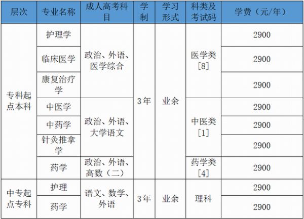 1.面向全省招生,报考临床医学、中医学、针灸推拿学、护理学专业本科层次(专升本)要求专业对口报考或已具备执业助理资格的人员报考;其它非医学类的专业不受限制。