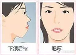 原因可能是下颚骨发育不全或齿列不整,下巴至脖子会呈现下滑曲线,从侧面看十分明显。