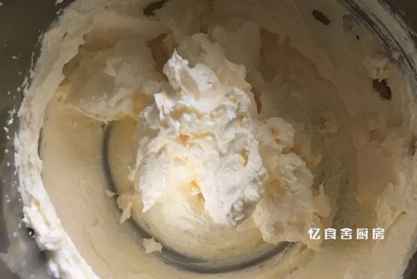 再分次加入打散的蛋液,每次加进去都要打至柔滑蓬松看不见蛋液才可以。