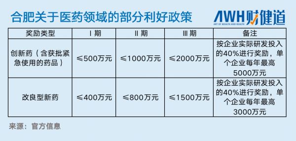 药械就地转化、原料药投产及药品生产等领域,合肥同样安排了相应的奖励数字。