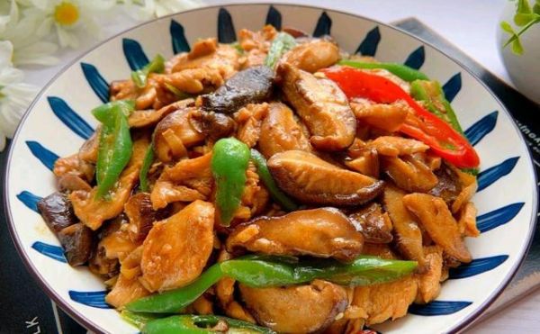 鸡胸肉切片,香菇切片,生姜切丝,辣椒斜刀切圈。鸡肉中放少许盐+1勺料酒+1勺生抽+1勺老抽+1勺淀粉+1勺食用油,拌匀备用。锅中放油放姜丝爆香,放鸡胸肉炒出盛出。锅中再放少许油,放香菇,放适量的盐,香菇炒熟,放鸡胸肉 放辣椒翻炒均匀即可