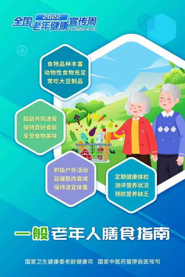 为贯彻落实健康中国战略和积极应对人口老龄化国家战略,全面推进老年健康促进行动,宣传普及老年健康政策和科学知识,切实提高老年人健康素养水平和健康水平,根据国家、省卫生健康委和中医药局的统一部署,今年的老年健康宣传周活动于7月25日—31日开展,今年的活动主题是“改善老年营养,促进老年健康”,提醒我们要多加关注老年人的营养健康问题,大家快来一起学习老年营养健康知识吧!