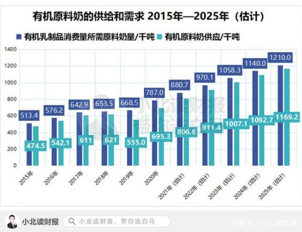 下图是我国有机原料奶的供给和需求的数据,随着消费者越来越意识到有机奶对健康和营养的益处,有机原料奶的需求还会继续增长。这是消费升级的背景下乳制品企业的机会。