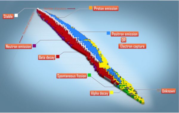 元素放射性与原子中“中子”与“质子”的关系图