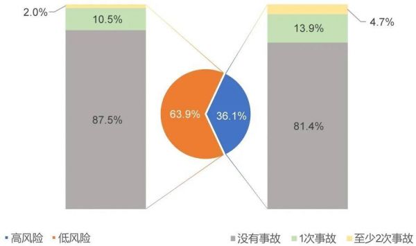 阻塞性睡眠呼吸暂停(OSA)在卡车司机群体中较为普遍。在样本卡车司机中,32.6%为OSA高风险,而63.9%为OSA低风险。根据图5,OSA高风险司机发生至少一次事故的比例为13.9%,至少两次的为4.7%,明显高于OSA低风险司机的10.5%和2.0%,显示OSA可能与驾驶事故率有关联。