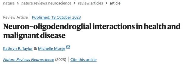 Taylor, Kathryn R, and Michelle Monje. “Neuron-oligodendroglial interactions in health and malignant disease.” Nature reviews. Neuroscience, 10.1038/s41583-023-00744-3. 19 Oct. 2023, doi:10.1038/s41583-023-00744-3