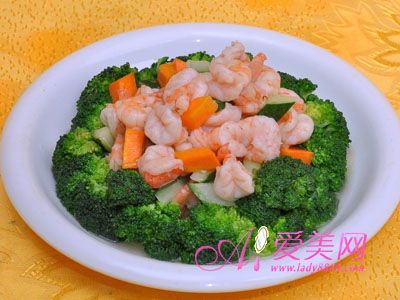 虾仁是非常有营养而且脂肪含量又非常低的食物,作为减肥吃海鲜当配餐是最合适不过的了。西兰花属于十字菜,除了低热量有助消化还是抗衰老圣品啊,每天吃都可以!