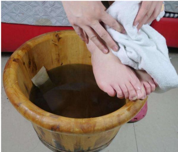 做法:将所有中药和清水一起煎煮30分钟,汁液和2000毫升开水一起倒入盆里,等到水温为30-43度时泡脚即可。每天泡一次,10天为一个疗程。