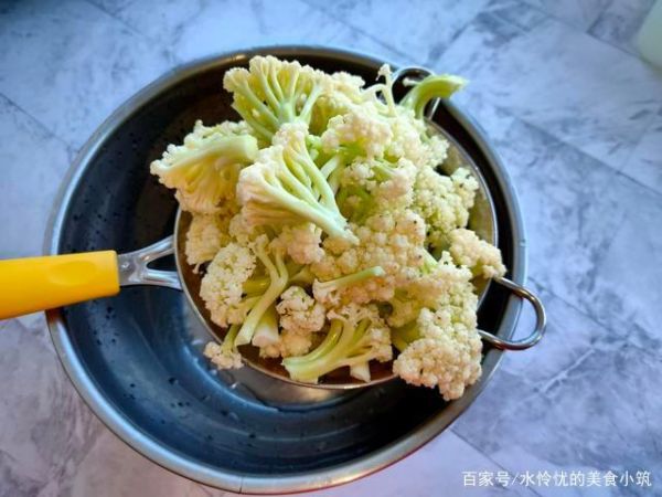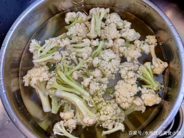 1.首先把花菜撕成小块,冷水加一勺盐浸泡十来分钟,半小时更好。