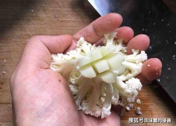 花菜根茎部用刀划十字架,然后沿着刀印撕小朵,也可以也可以直接一朵,只是烘烤时间会久些,但是还是建议大朵还是划开,避免大小朵差异大,烘烤时间不好掌握;