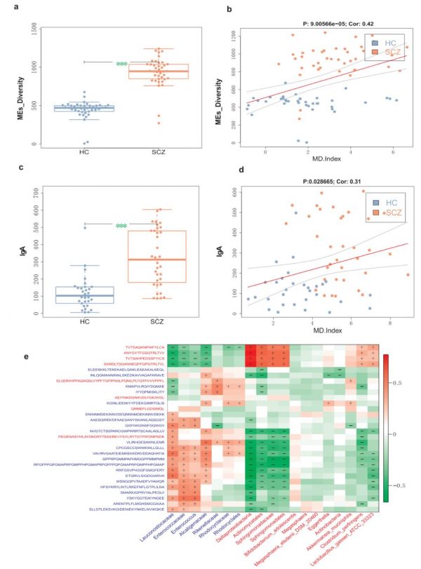 基于宏基因组关联分析,作者鉴定了与精神分裂症相关的肠道菌群组成,并预测了肠道内的MEs和IgA含量。测定肠道菌群的免疫功能,利用肠道IgA含量通过免疫机制判断肠道菌群是否在精神分裂症发病中起作用。揭示了微生物组在精神分裂症病因学中的作用,并有助于开发针对精神分裂症的微生物组靶向干预。