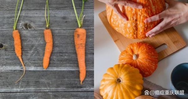 南瓜和红萝卜红萝卜含有丰富的β-胡萝卜素