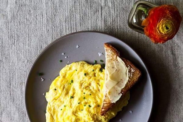你必须确保装蛋的盘子是温热的,否则刚刚辛苦做好的炒蛋很容易马上冷掉。