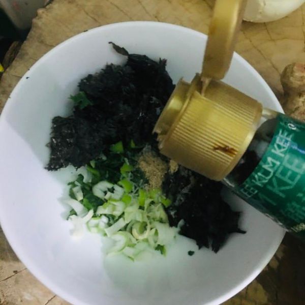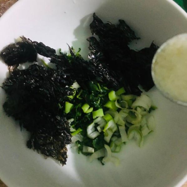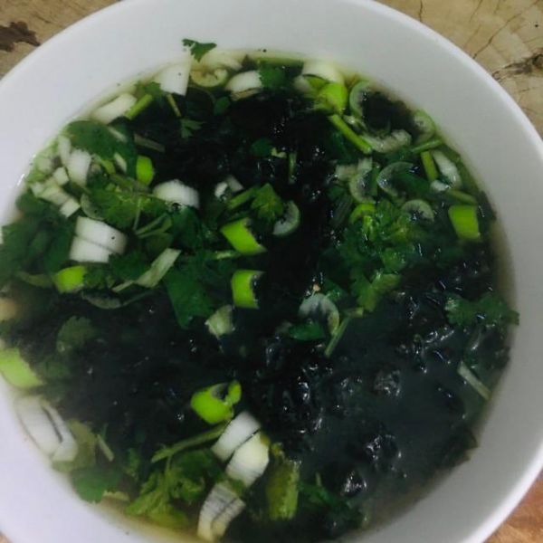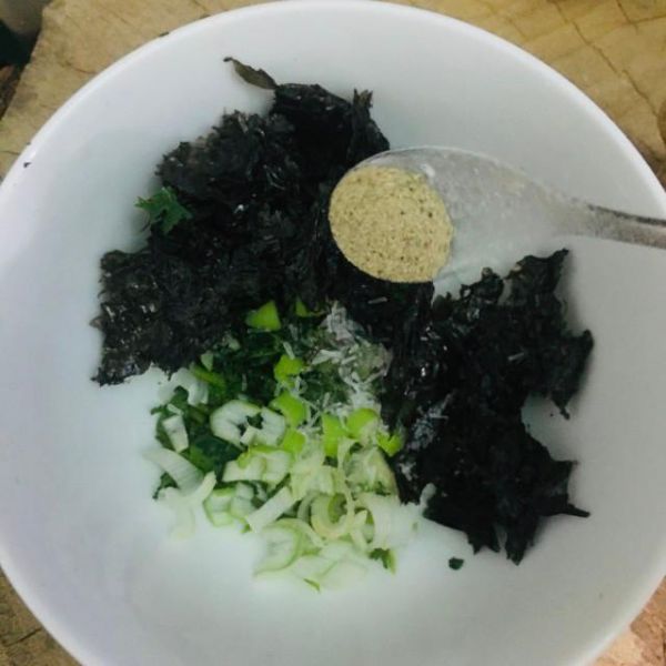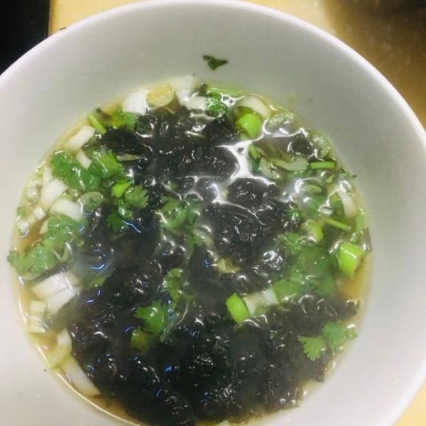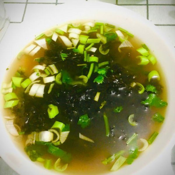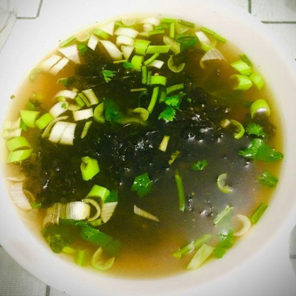 原料:紫菜、葱花、香菜、蒸鱼豉油、盐、味精、胡椒粉。