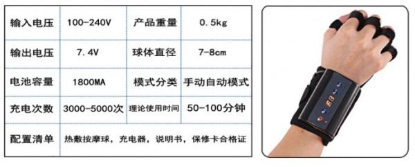 按摩康复球适用于中风、脑溢血、脑血栓、脑瘫等原因造成的手部功能异常,手指肌力异常,手无力,手指屈曲痉挛等现象。特制凸起按摩头针对手部进行康复按摩效果更好,设计远红外热敷功能,加热更快,远红外有效渗透皮下,作用于肌肤深层,改善手部功能,机芯震动按摩可以进行5档力度调节,适合不同人群,频率高,力度均匀。