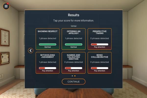 他说:“人们对探索和实验的兴趣越来越大。”“它会取代传统工具吗?不是马上。我认为在线自学和课堂学习是有价值的。但我认为虚拟现实很好地补充了这些工具,因为它为人们提供了一个非常安全的练习出口,并收到他们需要的反馈,以改变他们的行为。