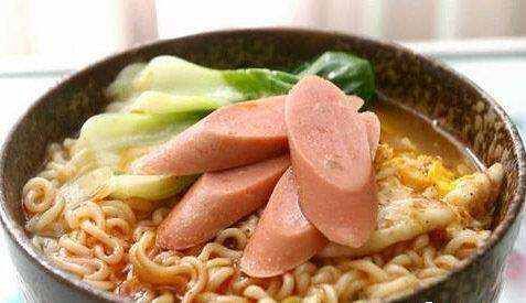 也就是说,吃一包泡面加一根火腿肠就已经达到了一天盐摄入量的边缘(推荐一天不超过6克盐),如果吃两个火腿肠就要超标了!午餐肉、腊肉、卤肉等也是同理。
