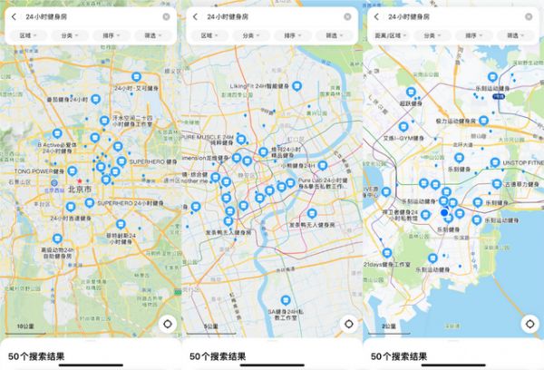 北京、上海、深圳的24小时健身房分布