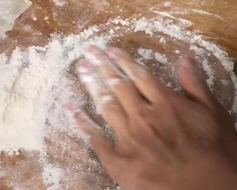 面团揉成粗条,切出大剂子,擀薄,我其实习惯吃小春饼,今天偷懒做大的,面很软,干粉多放点,防粘。