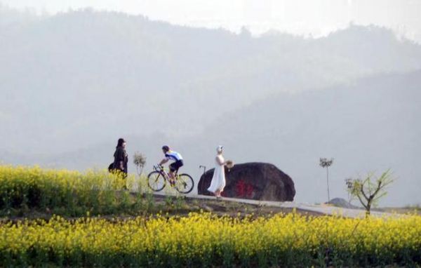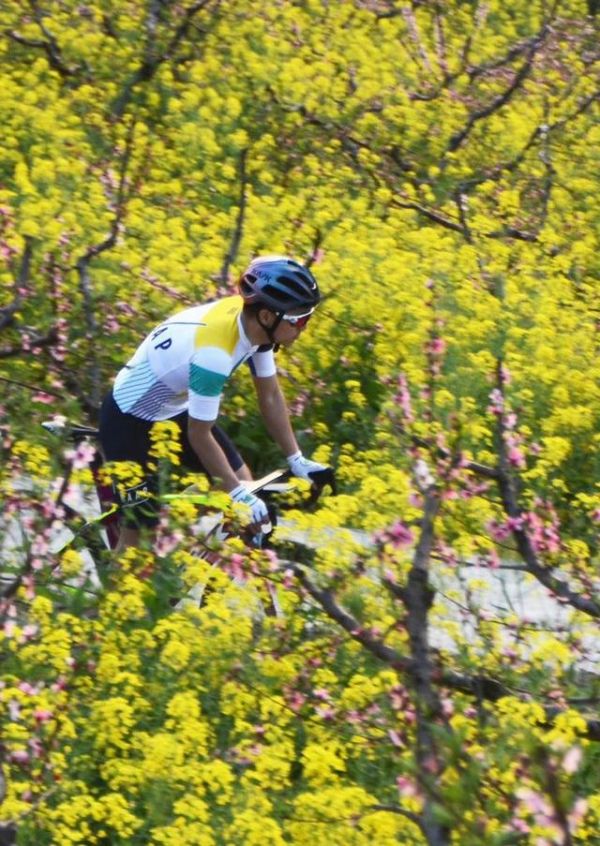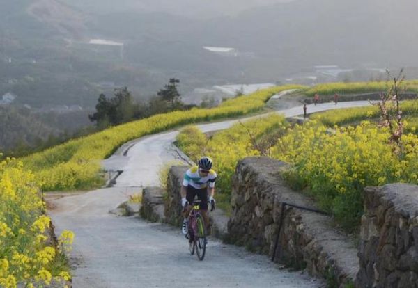 “黑山顶的特别之处在于桃花与油菜花套种,粉红与金黄的搭配,让人眼前一亮。层层叠叠的盘绕,一览无余的视野。这里也是骑行爱好者的网红打卡地之一,不仅因为风景优美,而是短短1公里的路爬升距离却有170米,相当于17%的坡度,能骑上这段路的骑友都可以称之为‘大神’。”蔡英杰告诉小时记者。