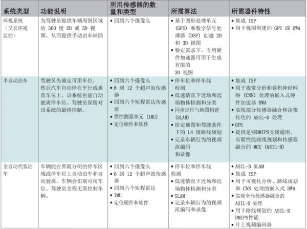 环视和自动泊车应用和要求(点击可放大)